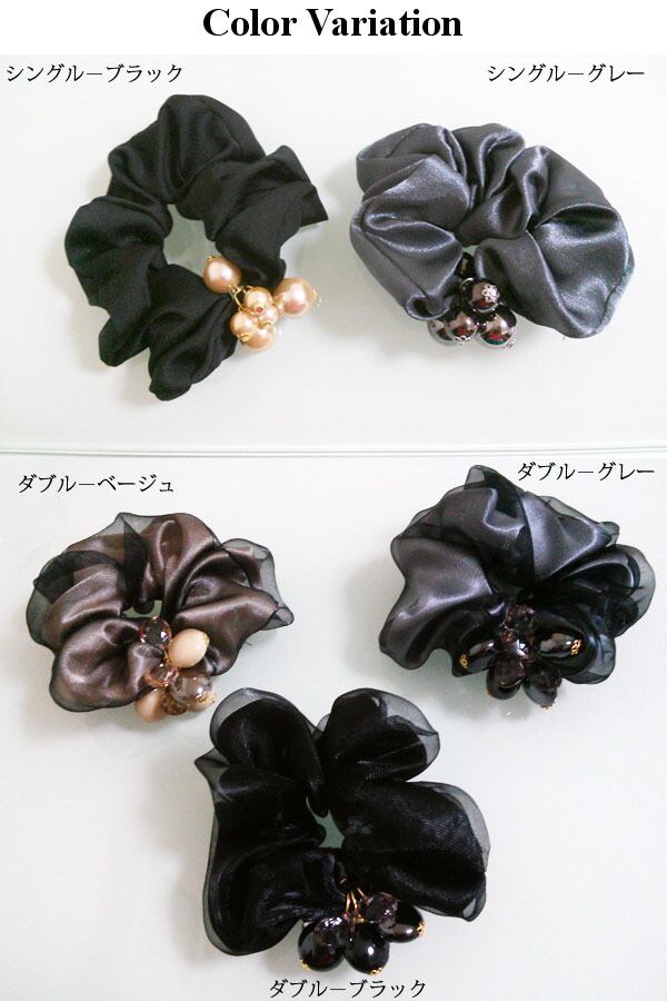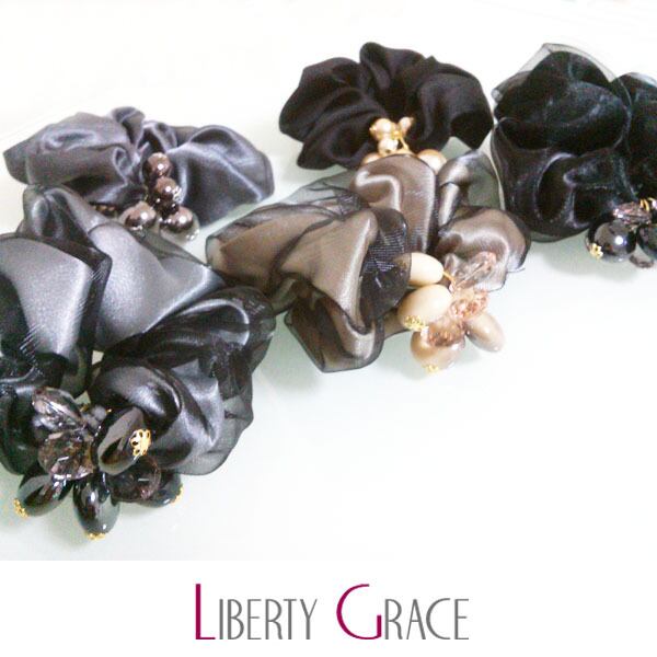 仕事や結婚式などのパーティー系でも使える、大人っぽく落ち着きのあるシュシュです。